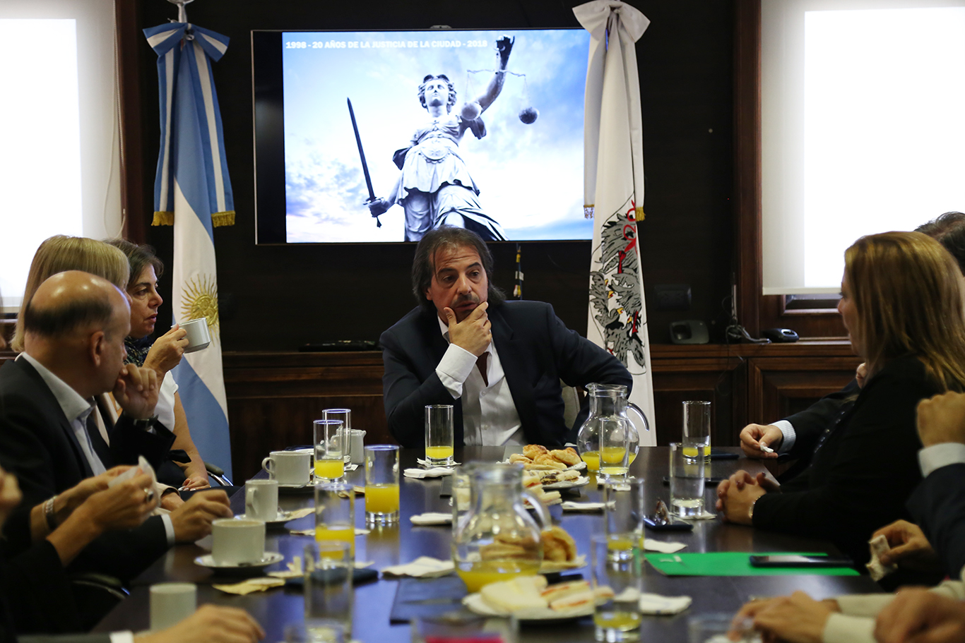 En la sala de reuniones del Consejo de la Magistratura porteño, se llevó a cabo un desayuno con motivo de la conmemoración del vigésimo aniversario de la justicia de la Ciudad Autónoma de Buenos Aires. La actividad fue organizada por la Unidad Consejero Marcelo Vázquez y contó con la participación del Vicepresidente Alejandro Fernández junto a los consejeros Javier Roncero, Vanesa Ferrazuolo, Darío Reynoso y Lidia Lago.